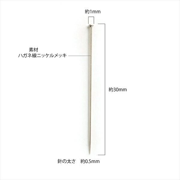 ■サイズ/太さ約0.5mm×長さ約30mm■入数/100g(約1750本入り) 0.5mmの極細ピンなので、薄い生地でも跡が残りにくく、安心してお使いいただけます