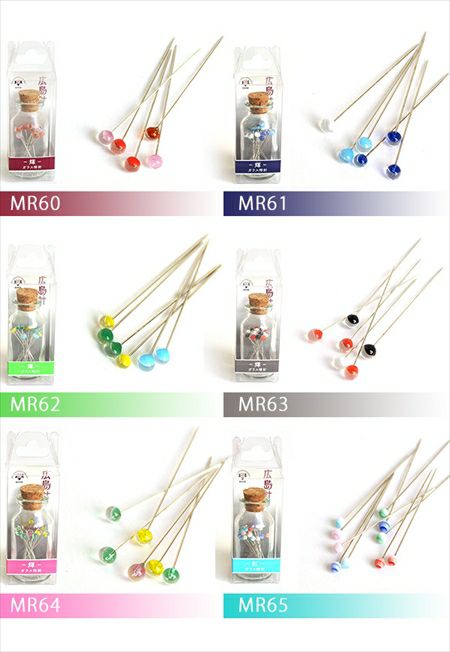 広島針 ガラス待ち針 - 輝 - ガラスビン入り 15本入 MR60-MR65| つくる楽しみ まち針 | 手芸材料のネットショップ つくる楽しみ.com