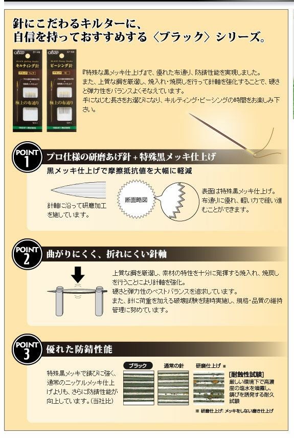 プロ仕様の研磨あげ針と特殊黒メッキ仕上げで生まれた極上の布通り。摩擦抵抗値を大幅に軽減しました。