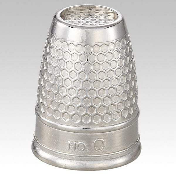 トップ(先端)に縁のついた金属製シンブル。針を押す時にはずれにくくなっています。