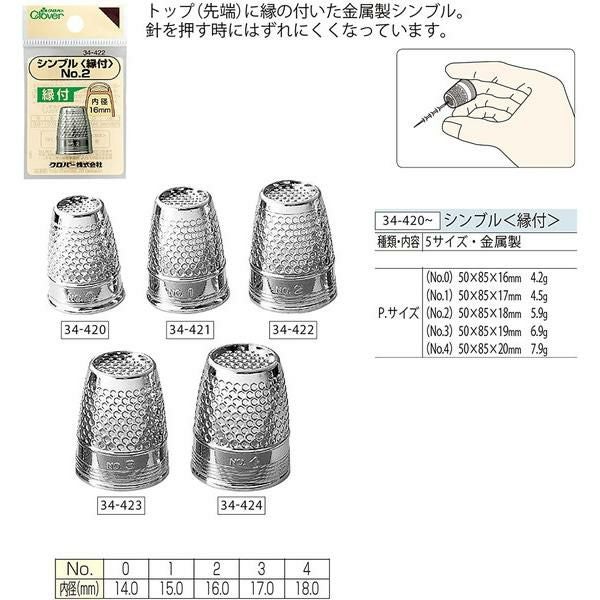 Clover シンブル縁付 No.0-9 指ぬき 34-420 34-421 34-422 34-423 34-424