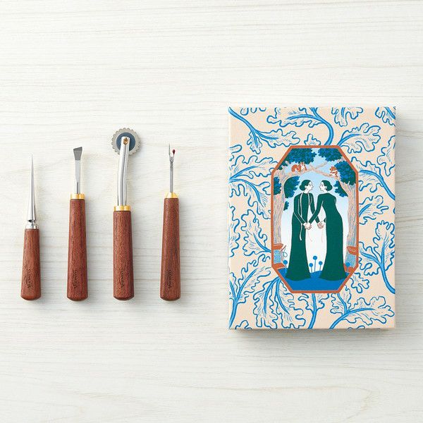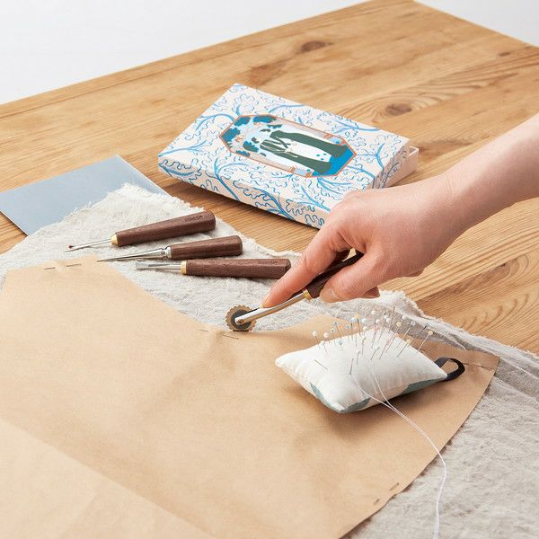セット内容: なめらか目打ち、リッパー、金属へら、ソフトルレット手になじむ質感が心地よいくるみの木のソーイングツールセットです。かわいいイラストの収納箱はミシン作業時に便利なトレーとして活躍!