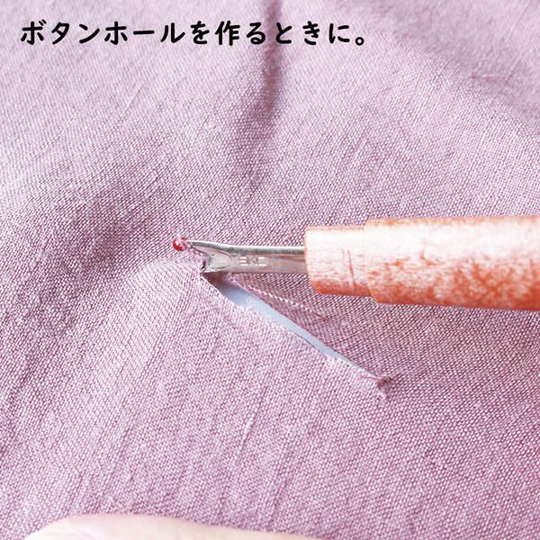 ボタンホールの切込みや、縫い目をほどく時に役立ち、糸をすくいやすく工夫された刃先もポイントです。
