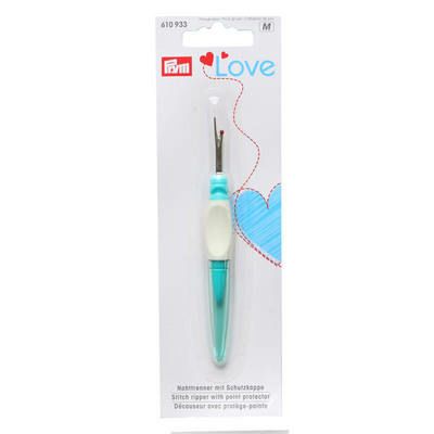 ドイツのプリム社製のリッパー。斬新なデザインで程よい太さで持ちやすく、長時間の作業にも疲れにくいです。縫い目をほどき切る時に、ボタンの糸を切る時に大変便利です。