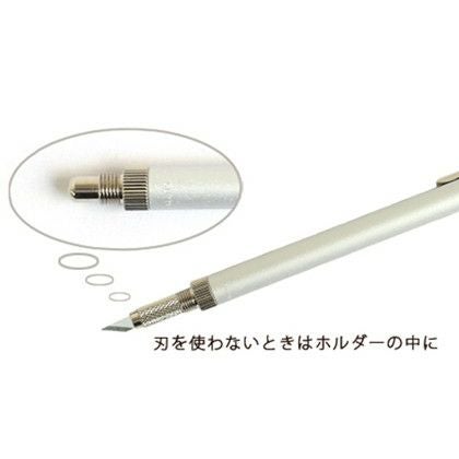■持ち運びに便利な安全収納付きデザインナイフです。(使わない時は、刃をホルダー内に収納可能)