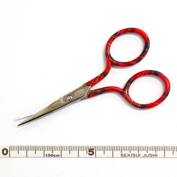 刺しゅうハサミ タータンチェック 赤 9cmはさみ ハサミ 鋏 手芸はさみ プレマックス PLEMAX イタリア製 | 手芸材料のネットショップ つくる楽しみ.com