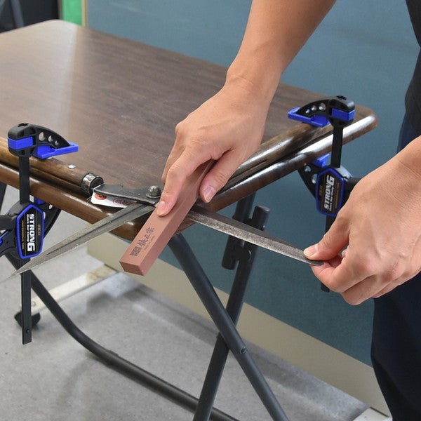 市販されている砥石は短いものが多く鋏を研ぐ前後のストロークが短く安定した研ぎが出来ていないと感じていました。