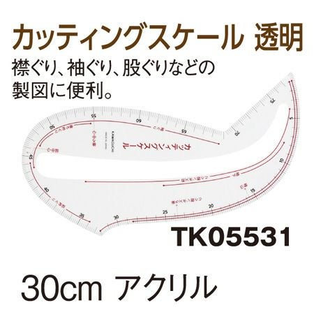 襟ぐり、袖ぐり、股ぐりなどの製図に便利なカッティングスケールです。