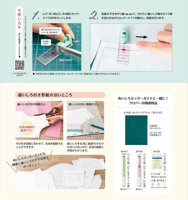 ※本商品は市販のカッターナイフと組み合わせて型紙をカットする道具であり、布地は切れません。