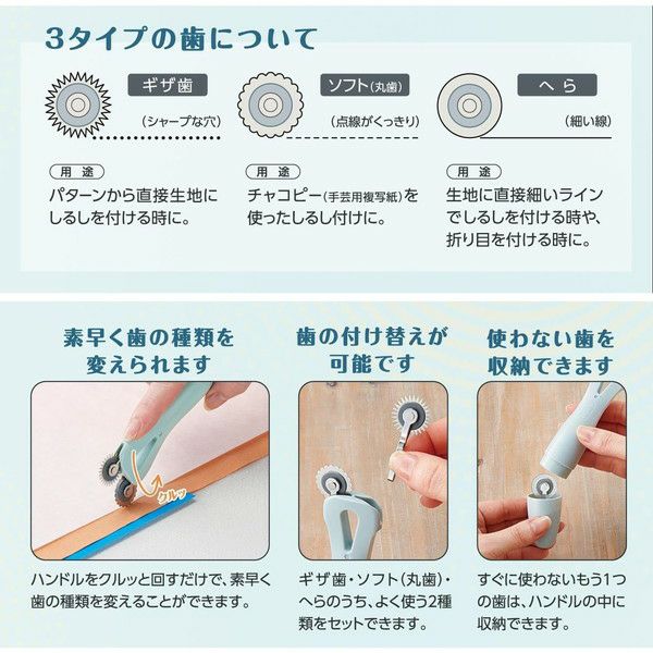 ・ソフト丸歯…チャコピー(手芸用複写紙)を使ったしるし付けに
