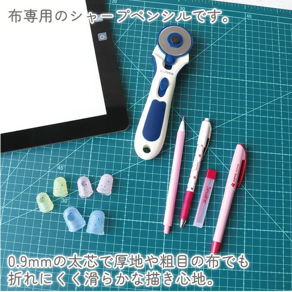 0.9mmの太芯で厚地や粗目の布でも折れにくく滑らかな描き心地。