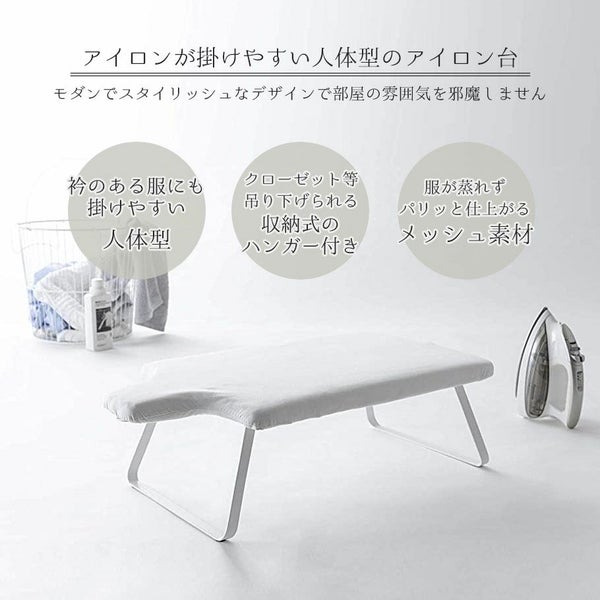 アイロン台 TOWER 人体型スチールメッシュ アイロン台 約W70XD36XH21cm タワー ハンガーフック付き クローゼットに収納可 ホワイト ブラック