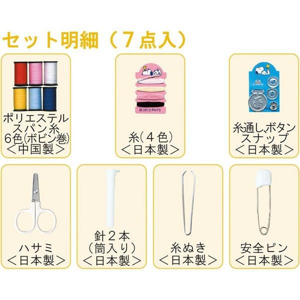 可愛いスヌーピー柄のミニポーチに入ったソーイングセットです。はさみ・糸セット・針他7点入りです。