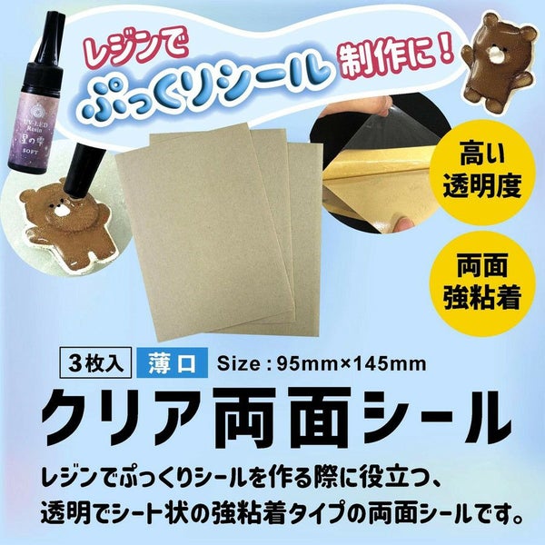 ・クリア両面シールなので、好きなデザインをシールの上に貼り、レジンで固めることができます。