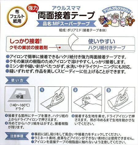 ●アイロンで簡単に接着できる剥離紙付き強力両面接着テープです。