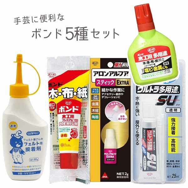 ボンド人気5種 お得セット 手芸ボンド ボンド 多目的 ハンドメイド ボンド 5個セット | 手芸材料のネットショップ つくる楽しみ.com
