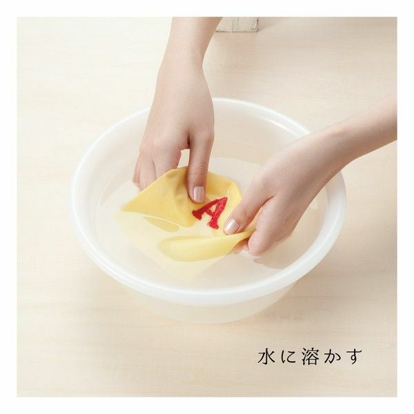 図案を写して、布にペタリ。 シールの上から刺しゅうをして、あとは水で洗って溶かすだけ。