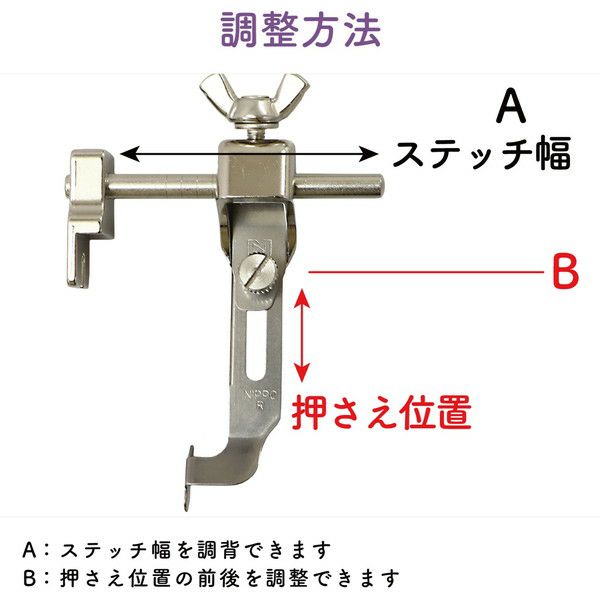 他の画像を見る NI-03419 押さえ ミシン押さえ 職業用ミシン対応 コンシールファスナーおさえ 調節機能付き 金属ファスナーにも対応 アクセサリー サイズ 6.5cm巾 ¥ 5,654 税込 お気に入りに登録する