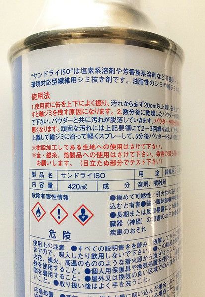 サンドライ 「繊維用シミ抜きスプレー」繊維用シミ抜き剤。