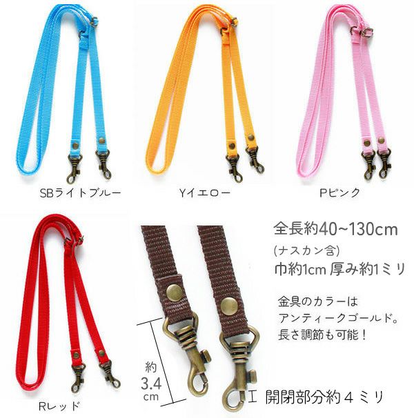 他の画像を見る DCH9844 持ち手 ショルダー 細幅アクリルショルダー 調節可能 アクリル 巾約15mm 長さ約75~140cm 1本入 秋カラー手芸材料 オータム ¥ 572 税込 お気に入りに登録する