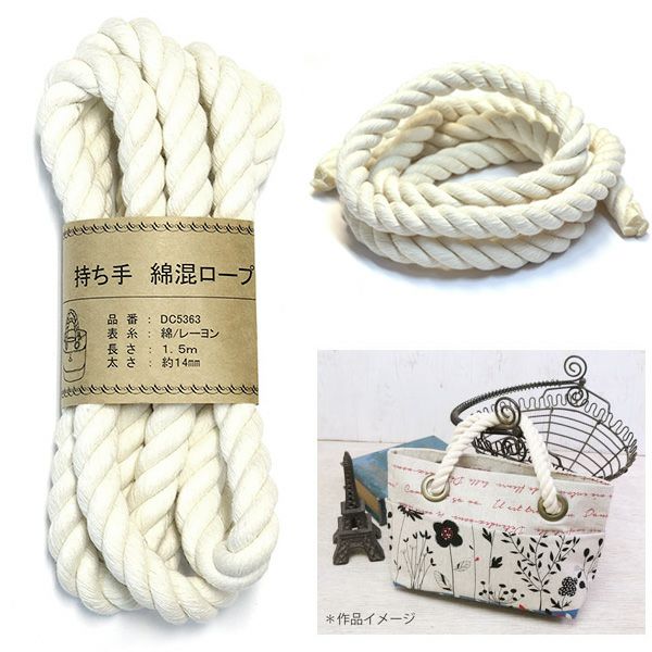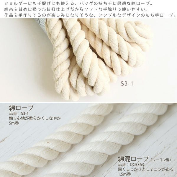 綿混持ち手用ロープ 綿ロープ 太さ Ф約1.4cmx長さ約1.5m | 手芸材料のネットショップ つくる楽しみ.com