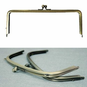 - 【片カン付】口金(がま口)差込タイプ(紙紐入)/W21.5xH9cm 角型(片カン付) アンティークゴールド