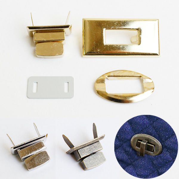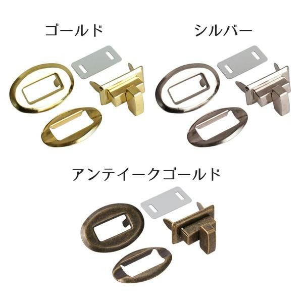 差込錠 カシメタイプ W22×H35mm 同色5個 ゴールド シルバー アンティーク 差し込み錠 留め具 バッグ 金具