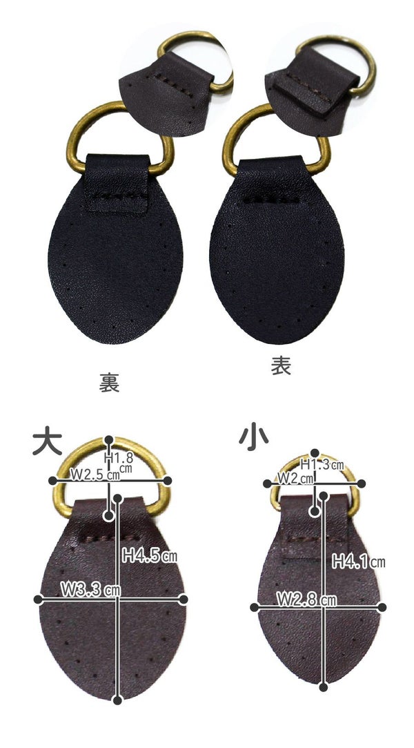 ■Dカン部分:大/H約1.8×W2.5㎝ 小/H約1.3×W2cm