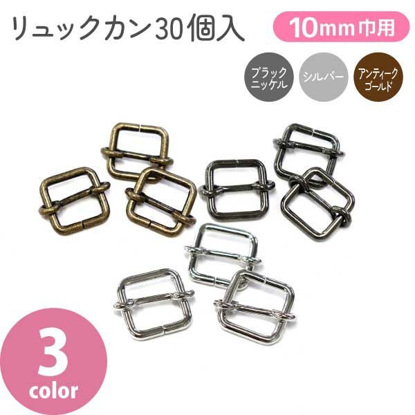 移動カン リュックカン 10mm 30個入 シルバー ブラック アンテークゴールド ショルダー金具