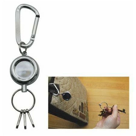 バッグなどに取り付けて片手で引っぱるだけでキーやパスケースが取り出せます。放すと自分で元の長さに戻ります。