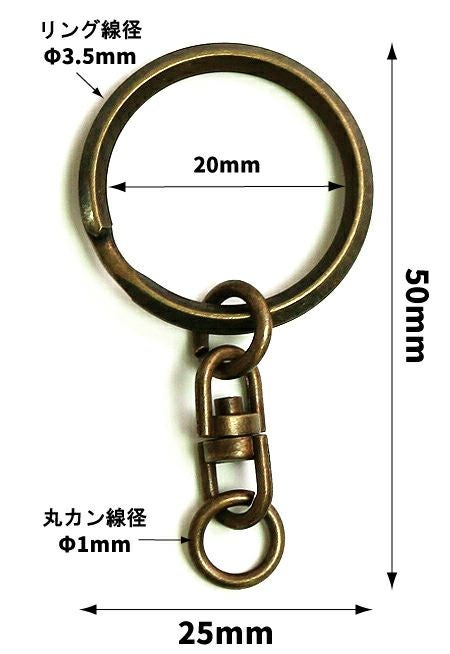 キーホルダーはゴールド・シルバーがほとんどでアンティークゴールドは初めて見ます。革やカシメとの色味を合わせるのにとても良いです。