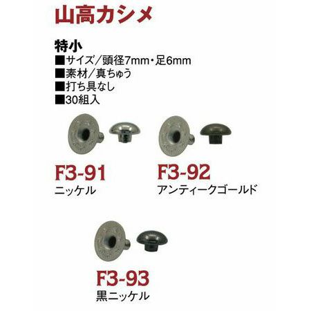 山高ドーム型カシメ 特小サイズ 頭径約7mm×足6mm 30個入【打ち具なし】 | 手芸材料のネットショップ つくる楽しみ.com