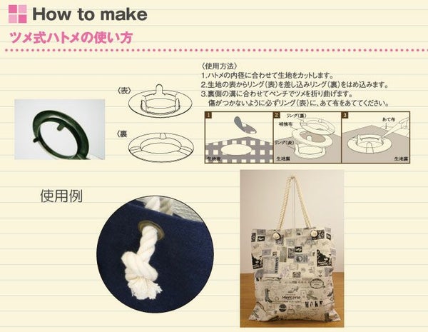 ロープを使ったバッグを作る際に必要なアイレットリングです。