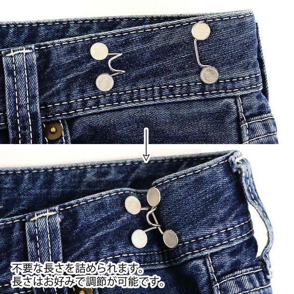 他の画像を見る MIS8021-8022 ウエスト調整フック 2セット入り デニム ジーンズ 調整 金具 釦 ホック ウエストアジャスター ウエストバックル ウェスト調整バックル 男女兼用 2カラー ¥ 660 税込 お気に入りに登録する