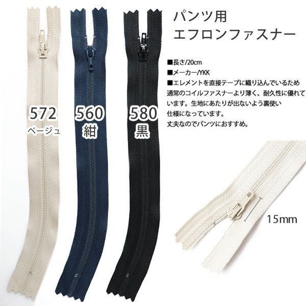 ズボン用 エフロン カーブ ファスナー 20cm (1本) | 手芸材料のネットショップ つくる楽しみ.com