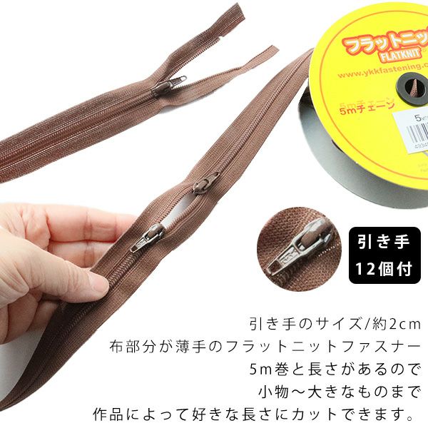好みの長さにカットできるファスナー フラットニット ファスナー ページ1 ( 5m巻、引手 スラス12個付)
