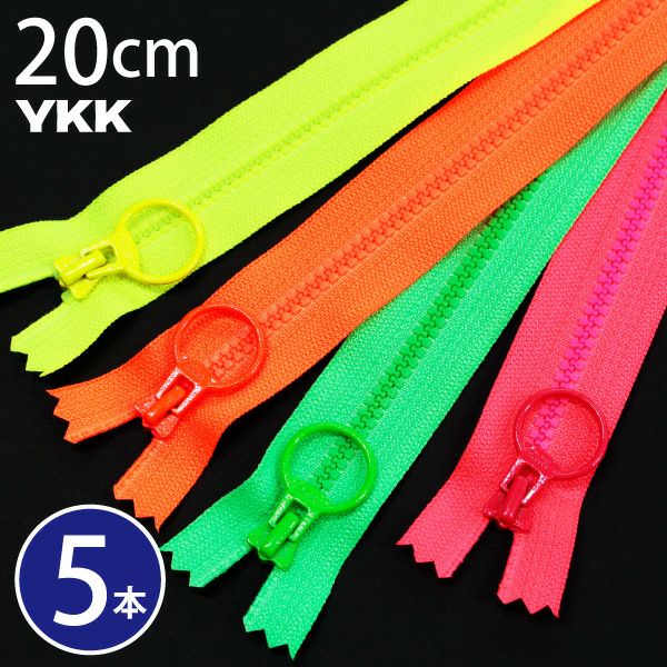 ファスナー ネオンカラービスロンファスナー 20cm 5本入 YKK | 手芸材料のネットショップ つくる楽しみ.com
