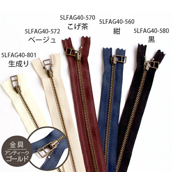 金属 ファスナー 40cm 5番 ゴールド シルバー アンティークゴールド YKK (1本) 秋カラーファスナー オータム | 手芸材料のネットショップ つくる楽しみ.com