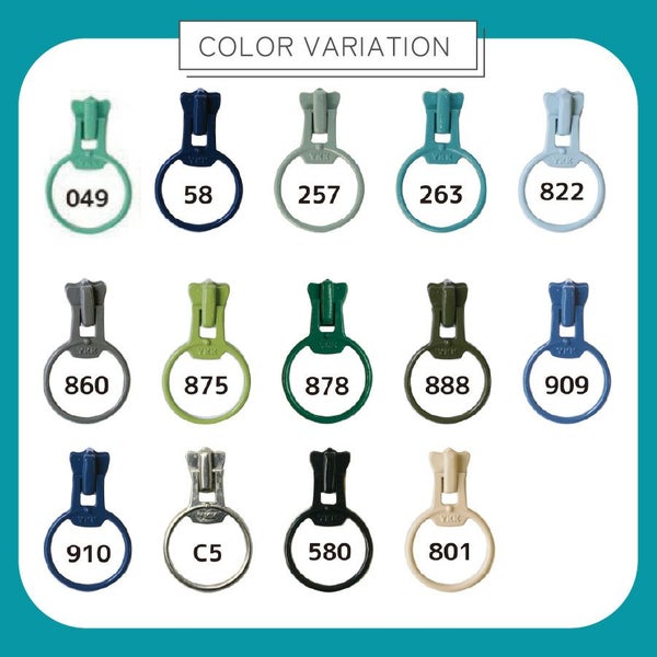 フリースタイル ファスナー 4番 【リングスライダー】 (3個) 緑~青系 長い | 手芸材料のネットショップ つくる楽しみ.com