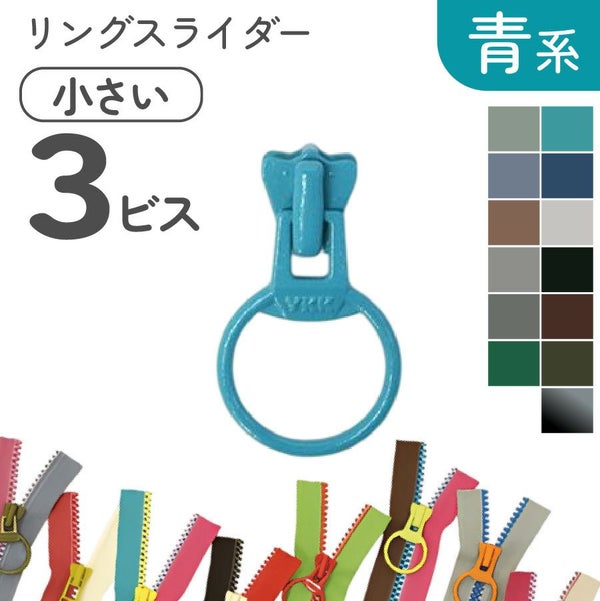 フリースタイル ファスナー 3番ミニ 【リングスライダー】 (3個) 緑~青系 長い | 手芸材料のネットショップ つくる楽しみ.com