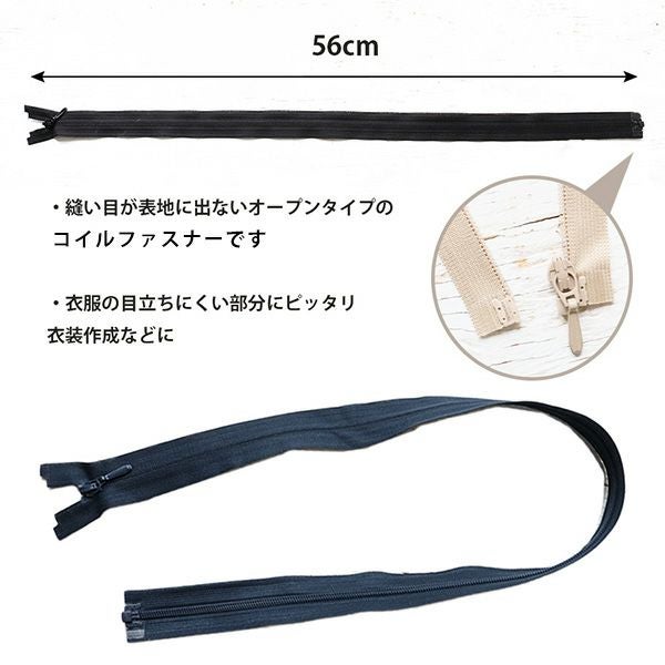 オープンコイルファスナー 56cm (1本) 裏使い用オープンファスナー YKK | 手芸材料のネットショップ つくる楽しみ.com