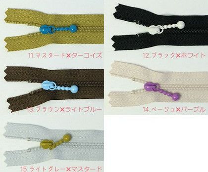 - (お試し5本セット) 玉付きファスナー コイル 20cm シック (各色1本) 玉付ファスナー 玉付 ファスナー YKK