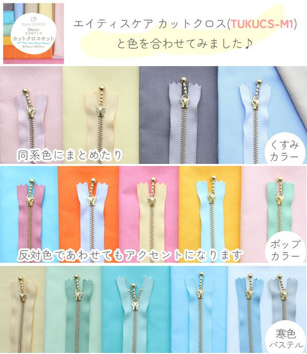 (お試し12本セット) 玉付きファスナー 20cm くすみパステル (各色1本) 玉付ファスナー 玉付 ファスナー YKK ファスナーお試し | 手芸材料のネットショップ つくる楽しみ.com