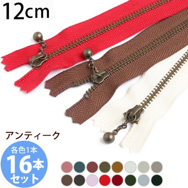 (お試し16本セット) 玉付きファスナー 12cm アンティークゴールド 金属 16色セット 玉付ファスナー 玉付 ファスナー YKK | 手芸材料のネットショップ つくる楽しみ.com