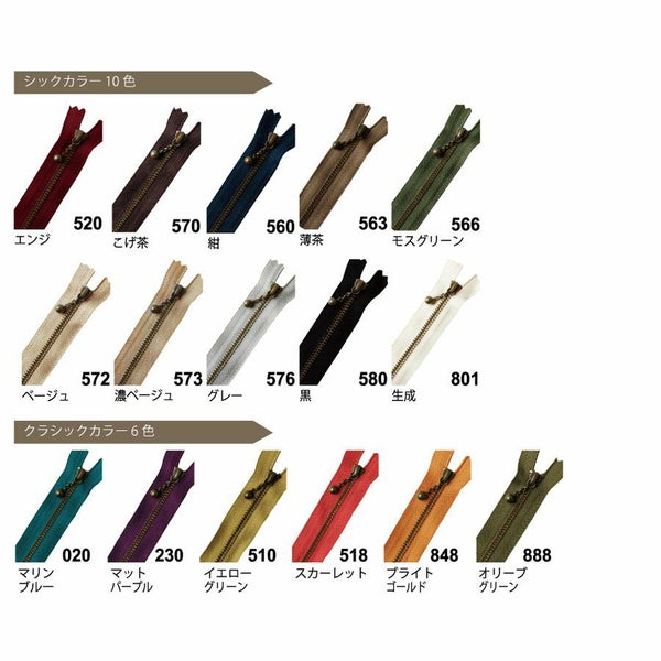 (お試し16本セット) 玉付きファスナー 14cm アンティークゴールド 金属 16色セット 玉付ファスナー 玉付 ファスナー YKK | 手芸材料のネットショップ つくる楽しみ.com