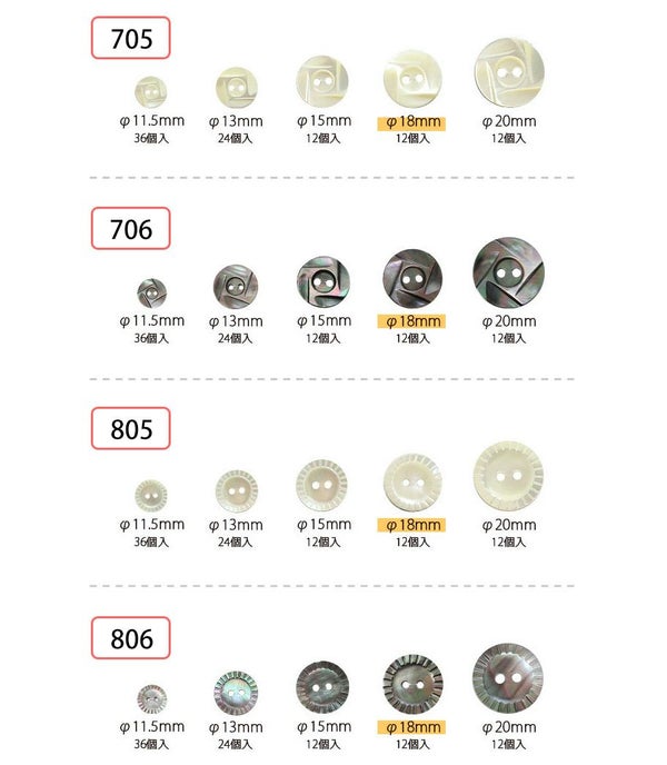 ボタン シェルボタン 18mm