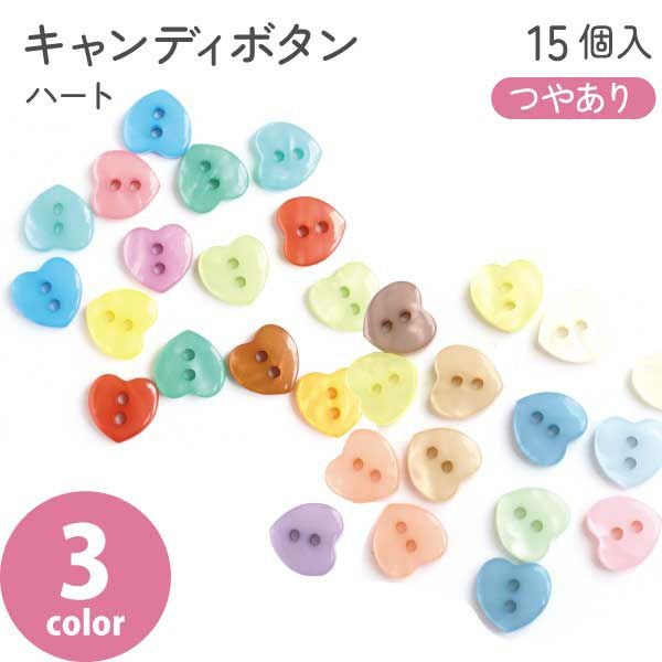 釦 ボタン ぼたん キャンディボタン ハート ミルキーカラー ポップカラー くすみカラー つや有り 15個入 装飾 モルドールデコパーツ ハート バレンタイングッズ | 手芸材料のネットショップ つくる楽しみ.com