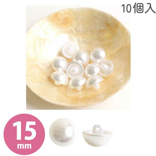 日本紐釦貿易 パール半丸ボタン 10個入 φ15mm ホワイト LW4493-15 | 手芸材料のネットショップ つくる楽しみ.com
