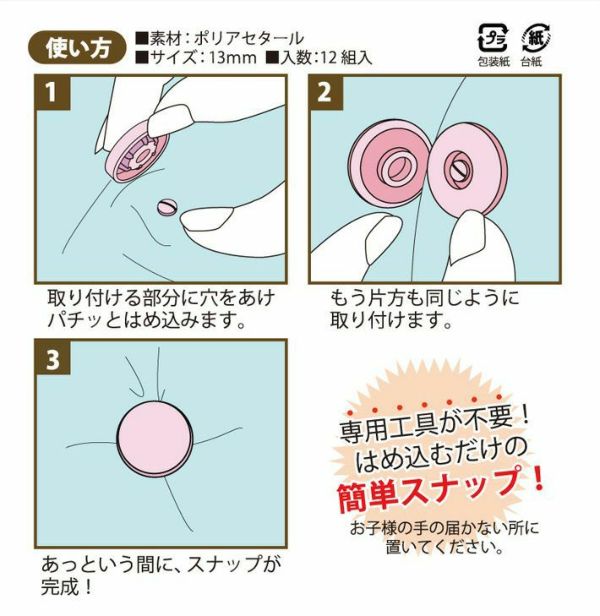 打ち具がいらない プラスチック スナップ ボタン ぼたん 釦 イージースナップボタン 13mm 12組 | 手芸材料のネットショップ つくる楽しみ.com