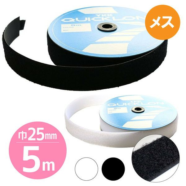 毛足が長くて強力接着 【徳用5m】マジックテープ クイックロンモヘア 縫い付けタイプ 白【Bメス】 (2.5cm巾×5m巻)| つくる楽しみ 面ファスナー ベルクロ 縫製用